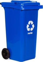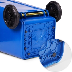 Conteneur robuste de 120 litres pour papier en HDPE de haute qualité, résistant aux UV, aux produits chimiques et aux dommages mécaniques. Son couvercle étanche empêche l’infiltration de pluie et la fuite des odeurs, ce qui le rend adapté à une utilisation extérieure comme intérieure. Roues en caoutchouc sur axe métallique et poignées antidérapantes pour un déplacement aisé même à pleine charge.