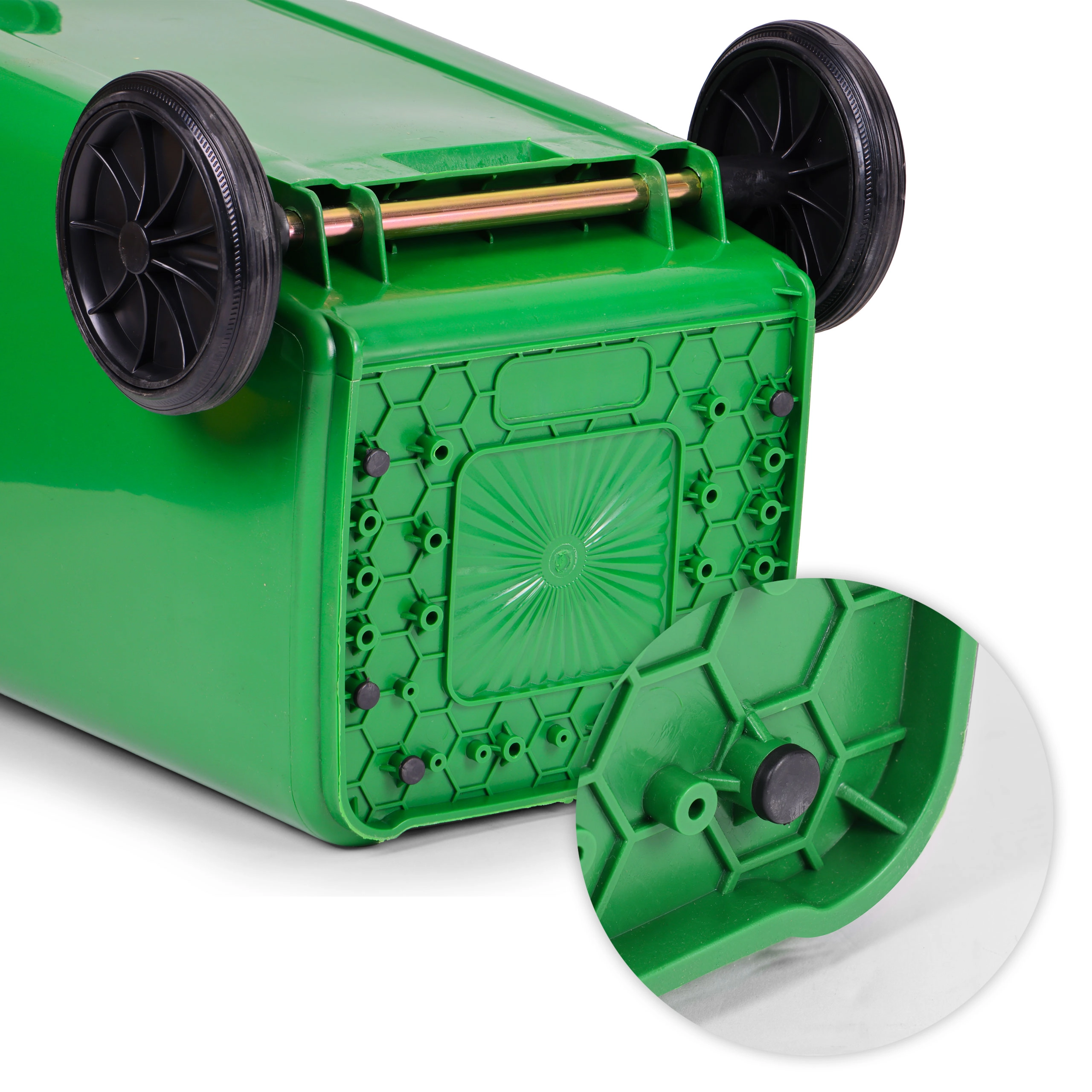 Le tri des déchets est plus simple avec le conteneur vert pour verre de 120 l. Le corps robuste en PEHD résiste aux UV, aux produits chimiques et aux chocs, ce qui le rend idéal pour un usage quotidien en extérieur comme en intérieur. Le couvercle étanche empêche l’entrée de l’eau de pluie et la diffusion des odeurs, gardant l’environnement propre et sans nuisances.