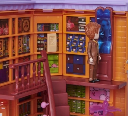 - Accessoires riches : friandises de cancre, oreilles à rallonge, pétard terrifiant, philtres d’amour, gnome, chouettes, caisse enregistreuse et table