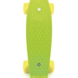 Pennyboard compact pour enfants et débutants offrant une conduite stable, une capacité de charge de 60 kg et des axes métalliques résistants. Grâce à sa longueur de 43 cm, il est facile à manœuvrer et idéal pour apprendre les figures de base comme pour se déplacer tranquillement en ville. La combinaison d’un plateau vert et de roues jaunes attire l’œil au premier regard.