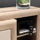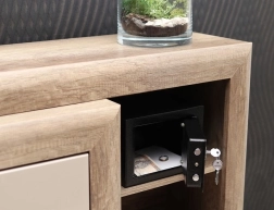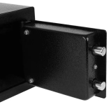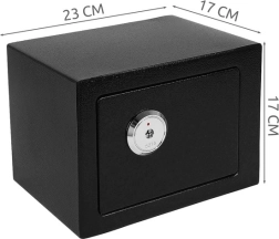 Le coffre a des dimensions suffisantes pour accueillir des documents de format A5 et d'autres petits objets. Il est équipé de portes robustes et de dimensions compactes, garantissant un poids léger et une manipulation aisée.