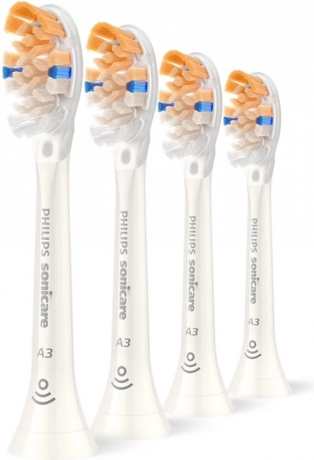 Les têtes de rechange PHILIPS Sonicare A3 All‑in‑One sont conçues pour une efficacité et un confort maximum. Les touffes de brins spécialement profilées, à section triangulaire, augmentent le contact avec la surface de la dent pour éliminer rapidement les taches, tandis que les brins latéraux plus longs prennent soin de la ligne gingivale. La technologie sonique transmet l’action nettoyante jusque dans les espaces interdentaires et le long du bord des gencives.