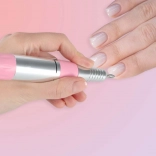 Ponceuse électrique compacte pour ongles de 15 W avec réglage progressif jusqu’à 35 000 tr/min, offrant une manucure et une pédicure précises à domicile comme en salon. Le contrôle est confortable grâce à l’inversion du sens de rotation, au choix du mode HAND/FOOT et à la pédale. Inclus: 6 fraises métalliques, 6 manchons abrasifs, un support et un porte-pièce à main pour un rangement sûr.