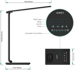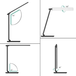 Les équipements pratiques incluent un port USB pour recharger téléphone ou écouteurs, un minuteur d’extinction automatique d’1 heure pour économiser l’énergie et un mode nuit pour retrouver la lampe facilement dans l’obscurité. La conception réglable avec base et tête pivotantes permet de diriger précisément la lumière sans ombres.