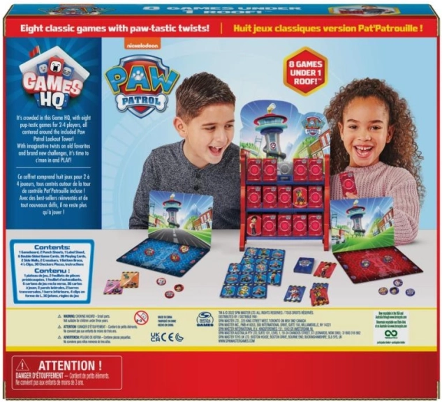 Profitez d’un moment en famille avec un coffret de huit jeux classiques dans le style 3D unique du QG de la PAT' PATROUILLE. Retrouvez le bingo, le morpion, les dames et d’autres jeux simples pour 2 à 4 joueurs dès 4 ans, qui développent la logique, la concentration et l’esprit d’équipe.