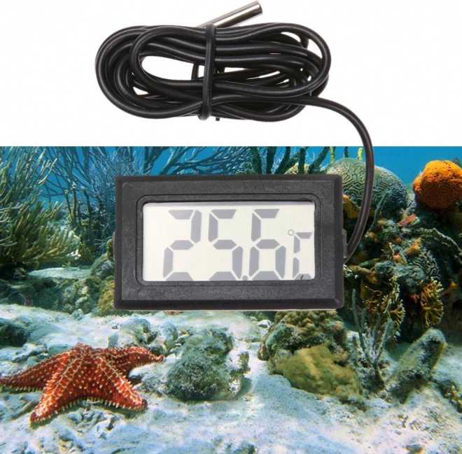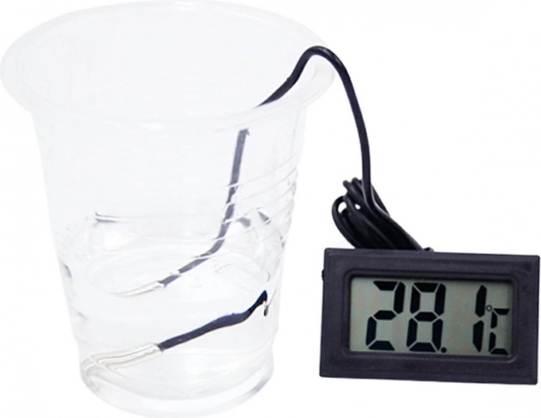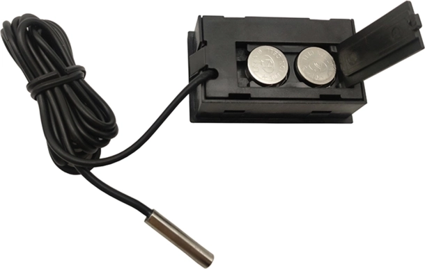Thermomètre électronique avec grand écran LCD et sonde sur long câble. La sonde (capteur) peut être placée pratiquement n'importe où, par exemple dans un aquarium, un terrarium, un réfrigérateur, un congélateur, une serre, etc. Partout où vous avez besoin d'une mesure précise de la température dans la plage de -50 à 70 degrés Celsius !