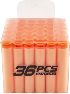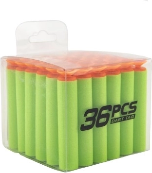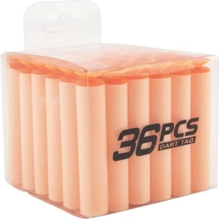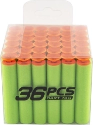 Complétez les munitions de vos blasters en mousse avec un ensemble pratique de 36 fléchettes de rechange avec ventouse dans une boîte transparente. Les fléchettes en mousse souple sont sûres pour le jeu, compatibles avec la plupart des pistolets jouets et, grâce à la boîte portable, vous avez toujours des réserves à portée de main.