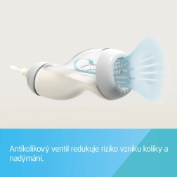 La valve spéciale libère l'air du biberon et maintient un débit de lait constant afin que bébé boive en continu sans avaler d'air.