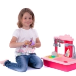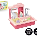 Profitez d'un lavage de vaisselle amusant avec cet évier pour enfants de couleur rose, qui comprend un robinet fonctionnel, un réservoir d'eau et un égouttoir amovible.