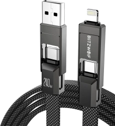 Le câble BlitzWolf BW‑HDC7 est la solution idéale si vous avez besoin d’un câble fiable pour plusieurs appareils. Grâce à la combinaison des connecteurs USB‑A, USB‑C et Lightning, vous rechargez facilement smartphones, tablettes et accessoires Apple et Android. La gaine en nylon tressé et les embouts renforcés améliorent la résistance aux torsions et aux flexions.