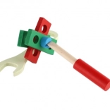 Les enfants exercent leur coordination et leur logique en serrant des écrous et en travaillant avec une clé et un tournevis.