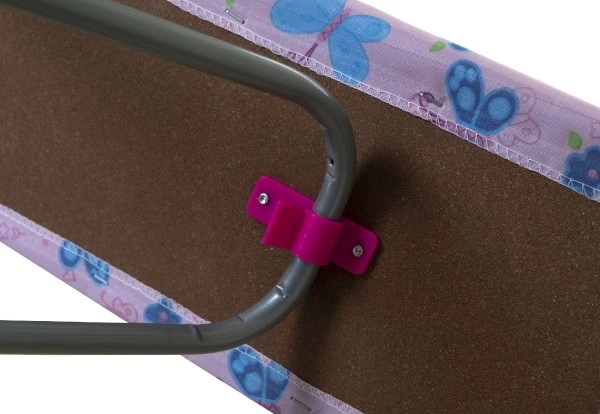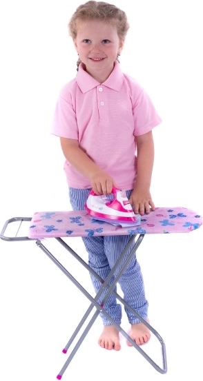 La table à repasser pour enfants est conçue pour les petits aides qui aiment imiter les adultes dans les tâches ménagères. Sa structure métallique avec mécanisme pliant et son plateau en bois résistant garantissent stabilité et longévité. La housse colorée et ludique à motifs de papillons apporte une touche de style à toute chambre d’enfant.