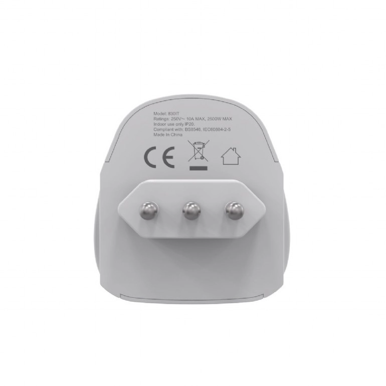 Adaptateur de voyage pratique pour connecter des appareils du monde entier aux prises italiennes à 3 broches. Grâce à la prise universelle, il accepte des fiches de plus de 200 pays et offre une connexion mise à la terre et sécurisée en Italie. Idéal pour voyager, compact et facile à utiliser. Remarque : ne convertit pas la tension.