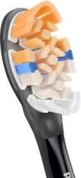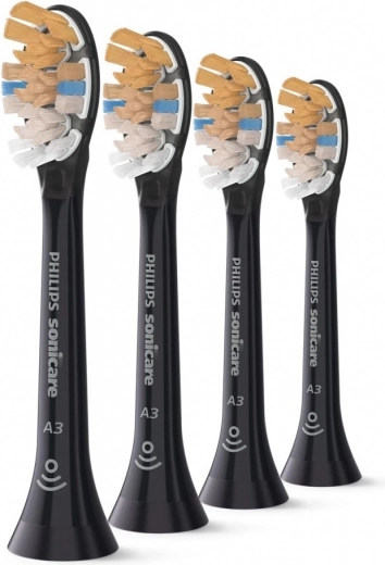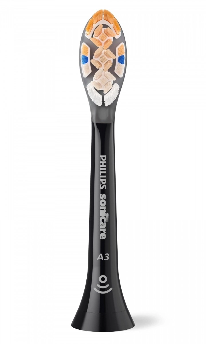 Les têtes Sonicare A3 Tout‑en‑un associent une technologie sonique de pointe et une conception de brins étudiée pour un nettoyage en profondeur même dans les zones difficiles d’accès. Les zones de brins triangulaires et multicolores augmentent la surface de contact et éliminent plus efficacement les colorations et dépôts, tandis que les brins latéraux extra‑longs prennent soin de la ligne gingivale.