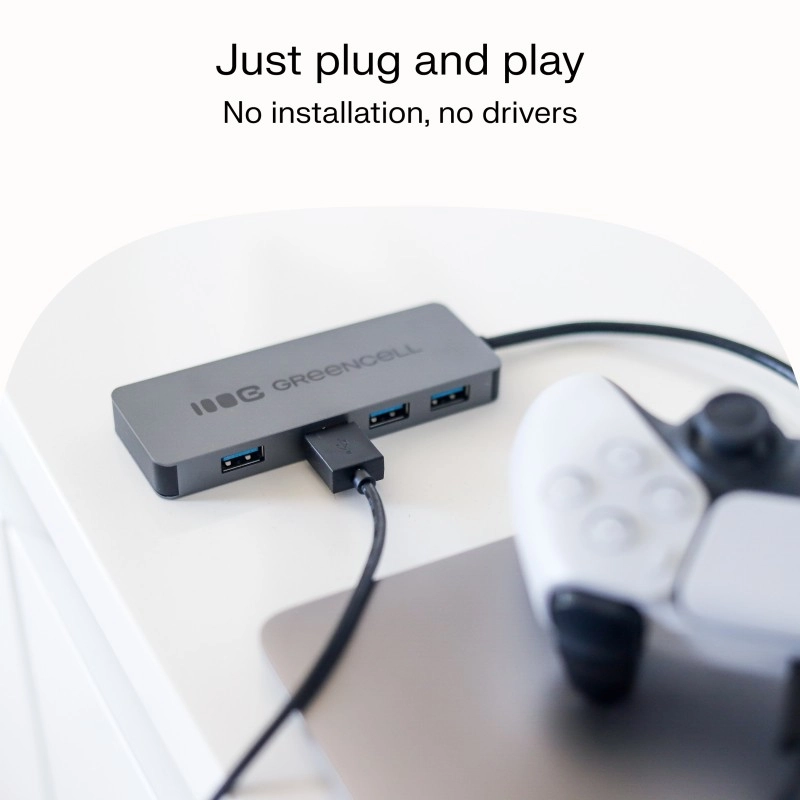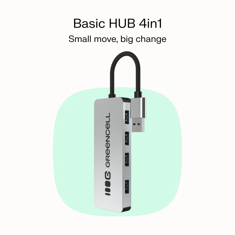 hub usb greencell basic 4× usb‑a 3.0 avec câble intégré