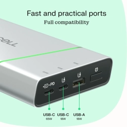 - 2× USB‑C + 1× USB‑A – flexibilité pour tous vos appareils.