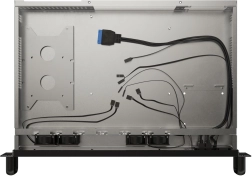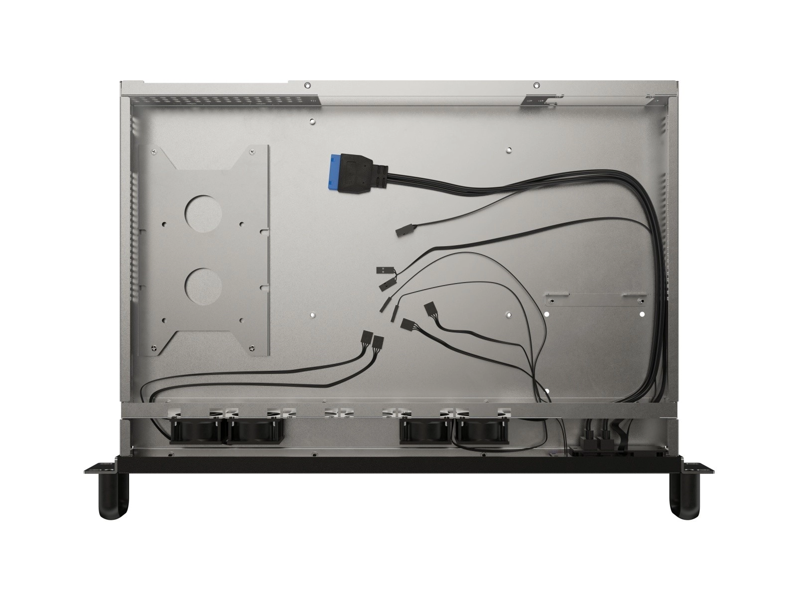 Le panneau avant perforé et 4× ventilateurs PWM de 40 mm assurent des températures stables même en fonctionnement continu, avec un accent sur le silence et la longévité.