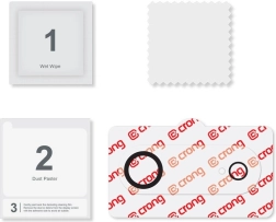 Grâce à la colle transparente, l’installation est rapide et sans bulles. Des anneaux autour des objectifs minimisent les reflets et aident à préserver la qualité des photos. L’emballage inclut un ensemble complet d’accessoires pour préparer le téléphone et est livré dans une boîte écologique premium.