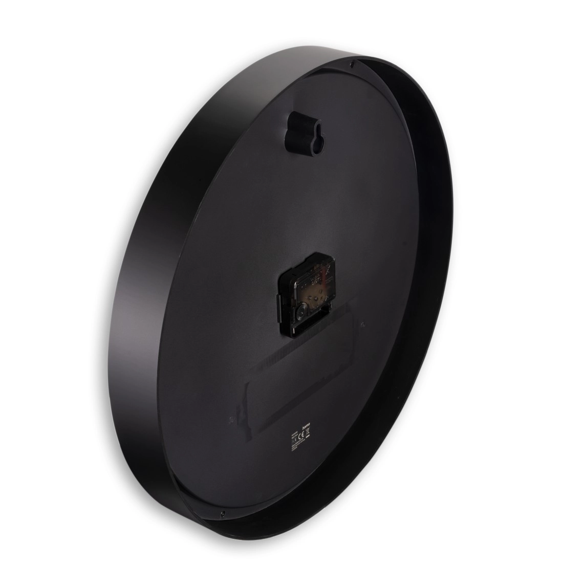 Une élégante horloge murale de 40 cm de diamètre en version noire séduit par son esthétique minimaliste et son excellente lisibilité. Grâce à un mouvement à quartz et à un cadran analogique avec une grande surface blanche et des chiffres arabes, elle offre une heure précise et une lecture claire. L’emballage contient tout le nécessaire pour une utilisation immédiate, y compris une pile AA et un mode d’emploi.