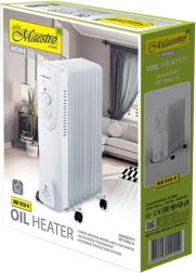 Radiateur à huile Maestro MR-950-9 compact et performant offrant une chaleur rapide et uniforme à la maison comme au bureau. Grâce à 3 niveaux de puissance (800/1200/2000 W), 9 ailettes chauffantes et un thermostat réglable, vous atteignez facilement la température idéale. Témoins de fonctionnement et roulettes pour un déplacement aisé assurent une utilisation confortable et sûre.