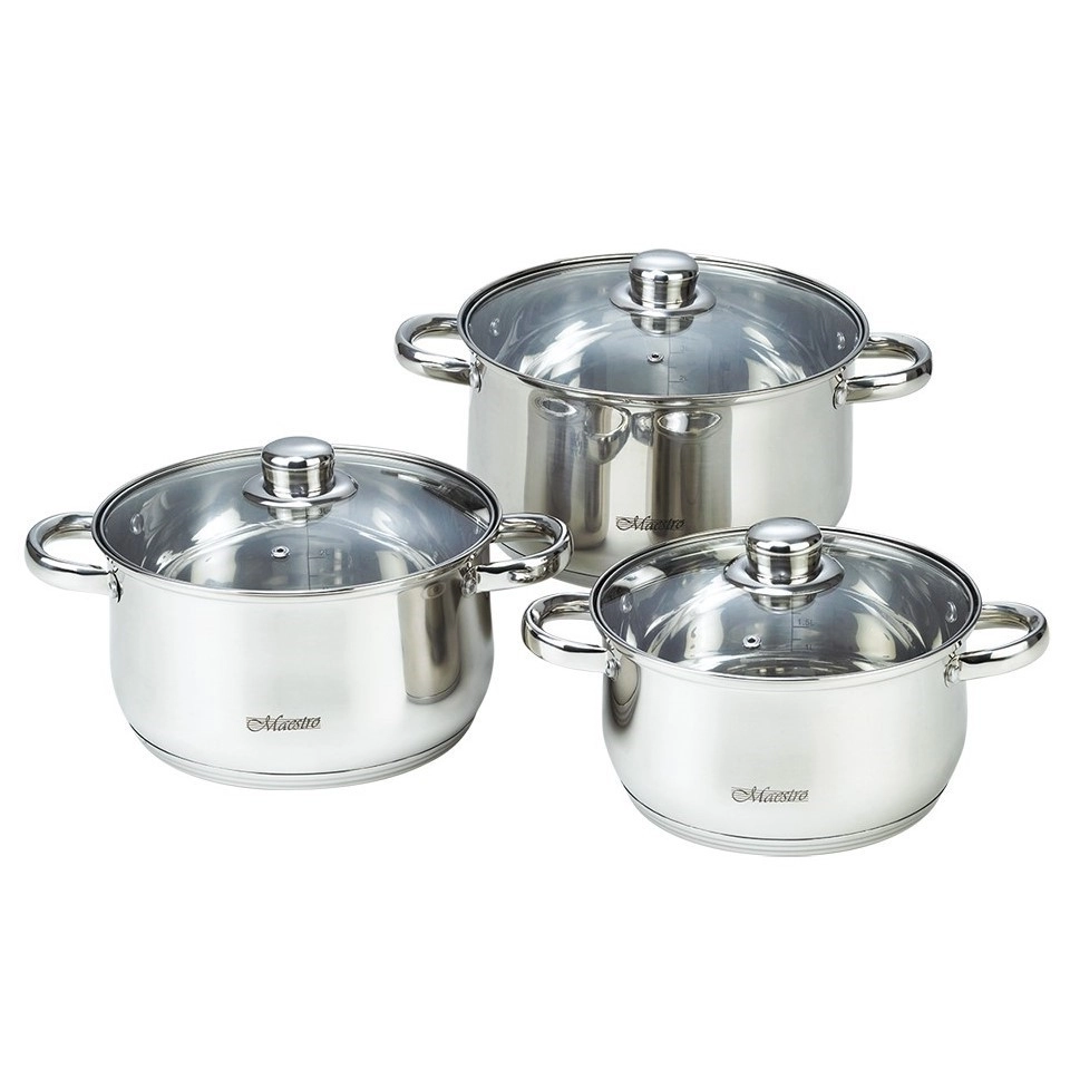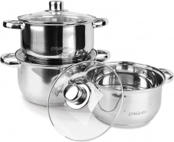 Avec l’ensemble de 6 pièces Maestro, vous obtenez des ustensiles fiables pour un usage quotidien. Les casseroles en acier inoxydable durable sont faciles à entretenir, les couvercles en verre avec orifice d’évacuation de vapeur permettent de contrôler la cuisson, et le fond thermo-accumulateur multicouche économise de l’énergie grâce à une répartition uniforme de la chaleur.