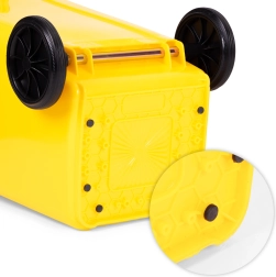 De grandes roues en caoutchouc sur un axe métallique robuste et des poignées ergonomiques assurent une manipulation facile même avec un bac pleinement chargé.