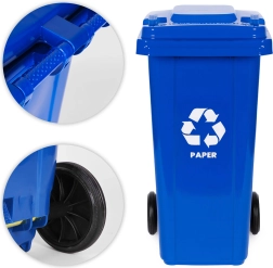Ensemble pratique de 4×120 l conteneurs différenciés par couleur pour un tri des déchets clair : papier, verre, plastique/métal, déchets mixtes. Fabriqué en PEHD résistant aux UV, avec roues en caoutchouc sur axe métallique, poignées ergonomiques et couvercle étanche contre la pluie et les odeurs. La stabilité est renforcée par des patins antidérapants. Convient aux particuliers et aux entreprises, compatible avec les systèmes municipaux EN 840 et certifié ISO 9001/14001/45001.