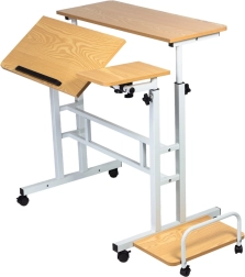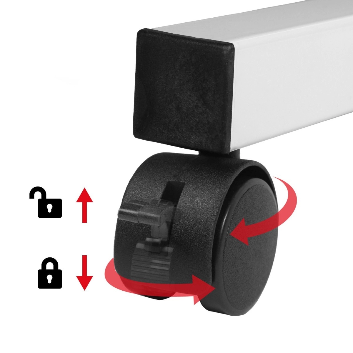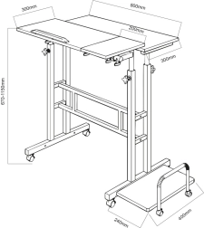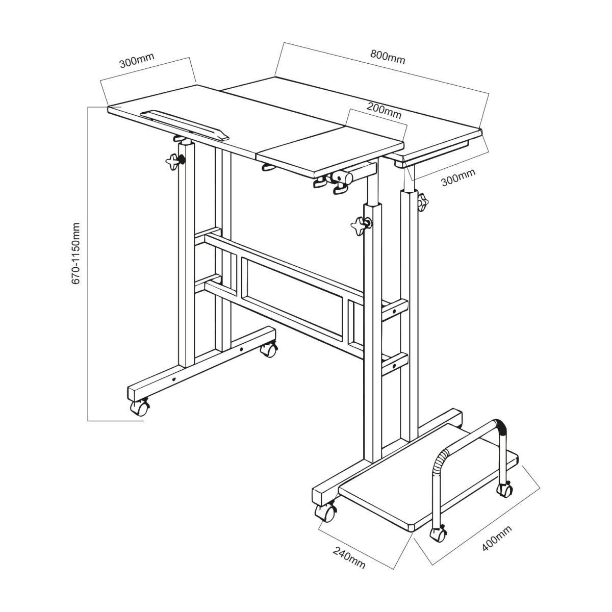Elle comprend également une étagère latérale 24 × 40 cm, idéale pour une unité centrale, une imprimante ou d’autres appareils. Grâce aux roulettes, vous déplacez la table là où vous en avez besoin et adaptez aisément votre espace de travail. Le réglage en hauteur dans une plage d’env. 67–115 cm favorise une posture plus saine assis comme debout.