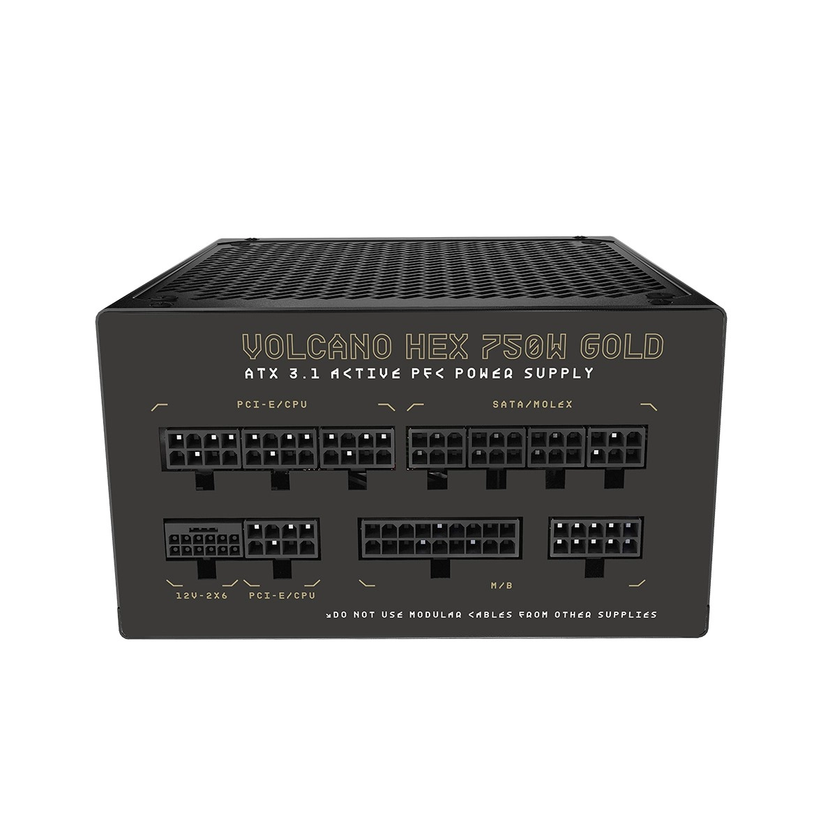 Le bloc d’alimentation performant MODECOM Volcano Hex 750 W respecte les standards modernes ATX 3.1 et PCIe 5.1, offre un rendement 80 Plus Gold, un ventilateur silencieux de 140 mm, un câblage entièrement modulaire et des condensateurs japonais pour un fonctionnement stable et fiable même avec des GPU/CPU exigeants.
