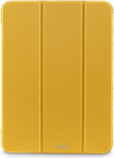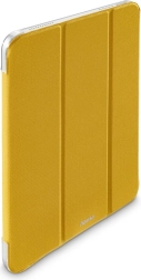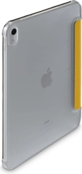 Étui TERRA élégant et écologique pour iPad 10,9" (10e génération, 2022) en couleur jaune offrant une protection légère et résistante, un réveil et une mise en veille automatiques grâce à un aimant, et deux positions de support pour regarder des contenus et écrire confortablement. Fabriqué en polyester 100 % recyclé avec un dos transparent qui met en valeur le design de la tablette, et offrant un accès complet à tous les ports et commandes.