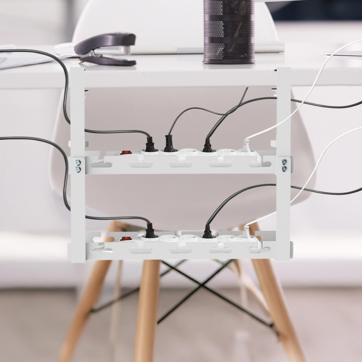 Pratique, l’organiseur de câbles sous plateau à deux niveaux est idéal pour les postes de travail modernes comme pour les setups de jeu. Sa longueur de 40 cm offre suffisamment d’espace pour deux multiprises, des adaptateurs secteur, des hubs USB ou un routeur, tandis que sa conception ouverte facilite le passage et l’aération des câbles.