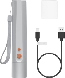 Lampe torche LED rechargeable compacte avec une puissance de 300 lm et une portée jusqu’à 80 m, offrant 4 modes d’éclairage, un signal SOS pratique, un diffuseur inclus pour un éclairage large et une recharge USB‑C confortable. Vérifiez rapidement l’état de la batterie grâce à un indicateur coloré.