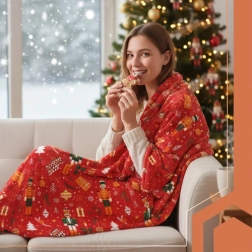 La couverture a une dimension universelle de 150 × 200 cm, parfaite pour le canapé, le lit ou le fauteuil du salon. Utilisez-la comme couverture ou jeté décoratif. Pliée, elle prend un minimum de place et, grâce à son ruban satin, elle est prête à être offerte comme un super cadeau de Noël.