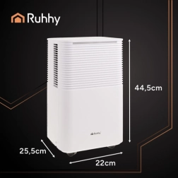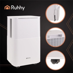 RUHHY DRYZIX est un déshumidificateur à condensation conçu pour une absorption efficace de l’humidité avec une capacité de 12 l/24 h. Le hygromètre et l’hygrostat intégrés maintiennent le niveau d’humidité réglé, tandis que le dégivrage automatique protège les éléments de refroidissement contre le givre et assure un fonctionnement stable même à des températures plus basses.
