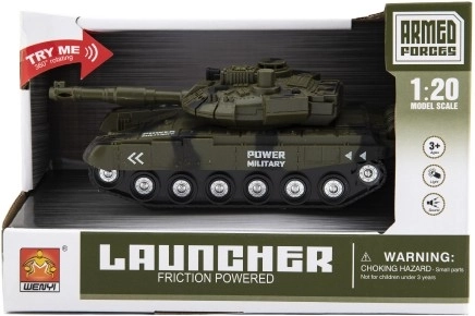 Le char est fabriqué en plastique résistant et est prêt à l’emploi dès le déballage – 3× piles AG13 incluses. Le jouet convient aux enfants à partir de 3 ans et, grâce à sa taille compacte de 20 cm, il est parfait pour des batailles à la maison comme en déplacement.