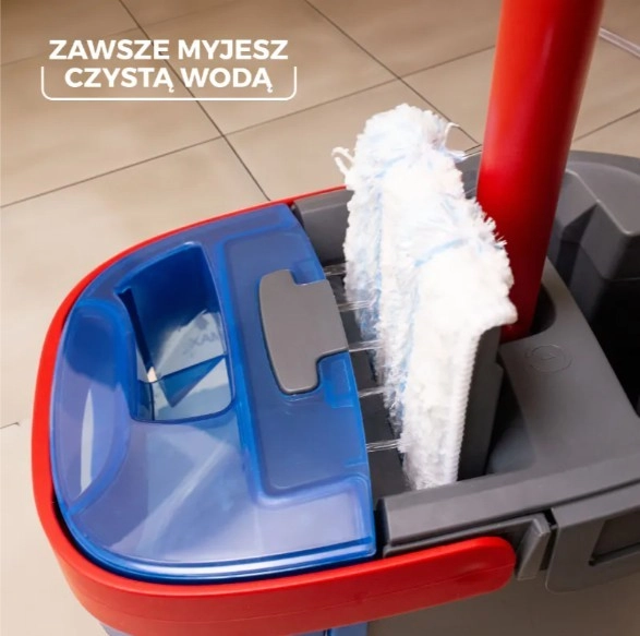 Le seau pratique avec poignée ergonomique facilite le transport, la vidange et le rinçage du balai, tandis que les compartiments séparés garantissent la propreté.