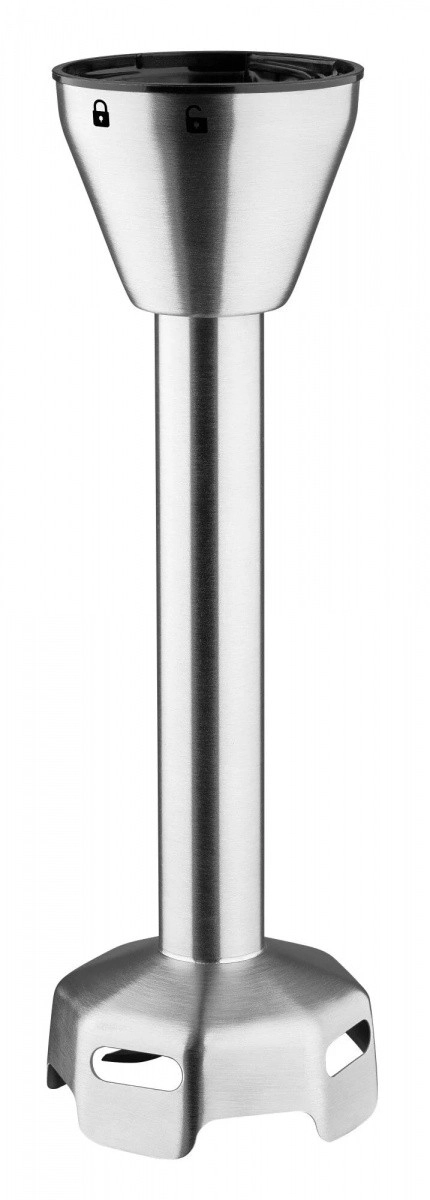 Le pied métallique avec cloche de protection minimise les projections et est idéal pour mixer directement dans un récipient ou une casserole.