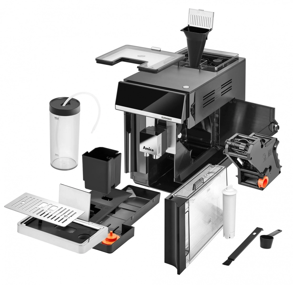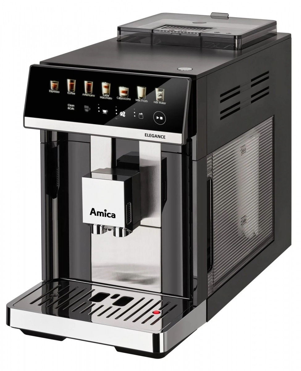 Amica Elegance est une machine à café automatique fiable pour préparer espresso, cappuccino et caffè latte dans des proportions parfaites. Grâce au moulin en acier inoxydable, les grains sont moulus juste avant l’extraction, et vous choisissez parmi 5 niveaux de mouture pour l’intensité souhaitée. La haute pression garantit un arôme riche et une mousse crémeuse, tandis que le système SuperCrema couronne chaque tasse d’une crema généreuse.