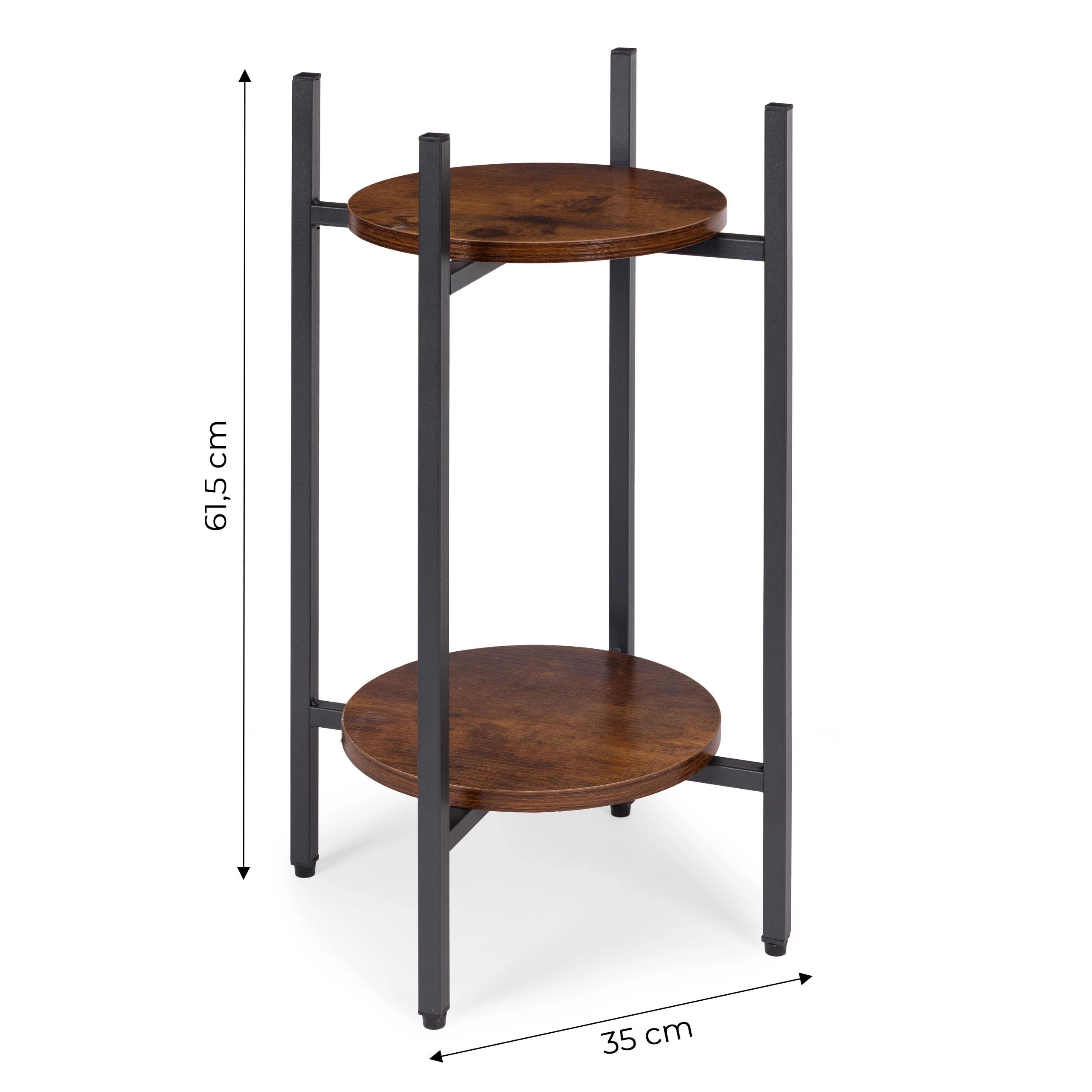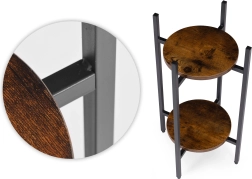 La structure en acier peint par poudrage résiste à la corrosion et à l’usure quotidienne, tandis que les étagères en panneau de particules aspect bois soulignent le caractère loft. Les embouts antidérapants protègent le sol et garantissent la stabilité. Avec une capacité jusqu’à 5 kg, ce support est idéal pour des pots de petite à moyenne taille.