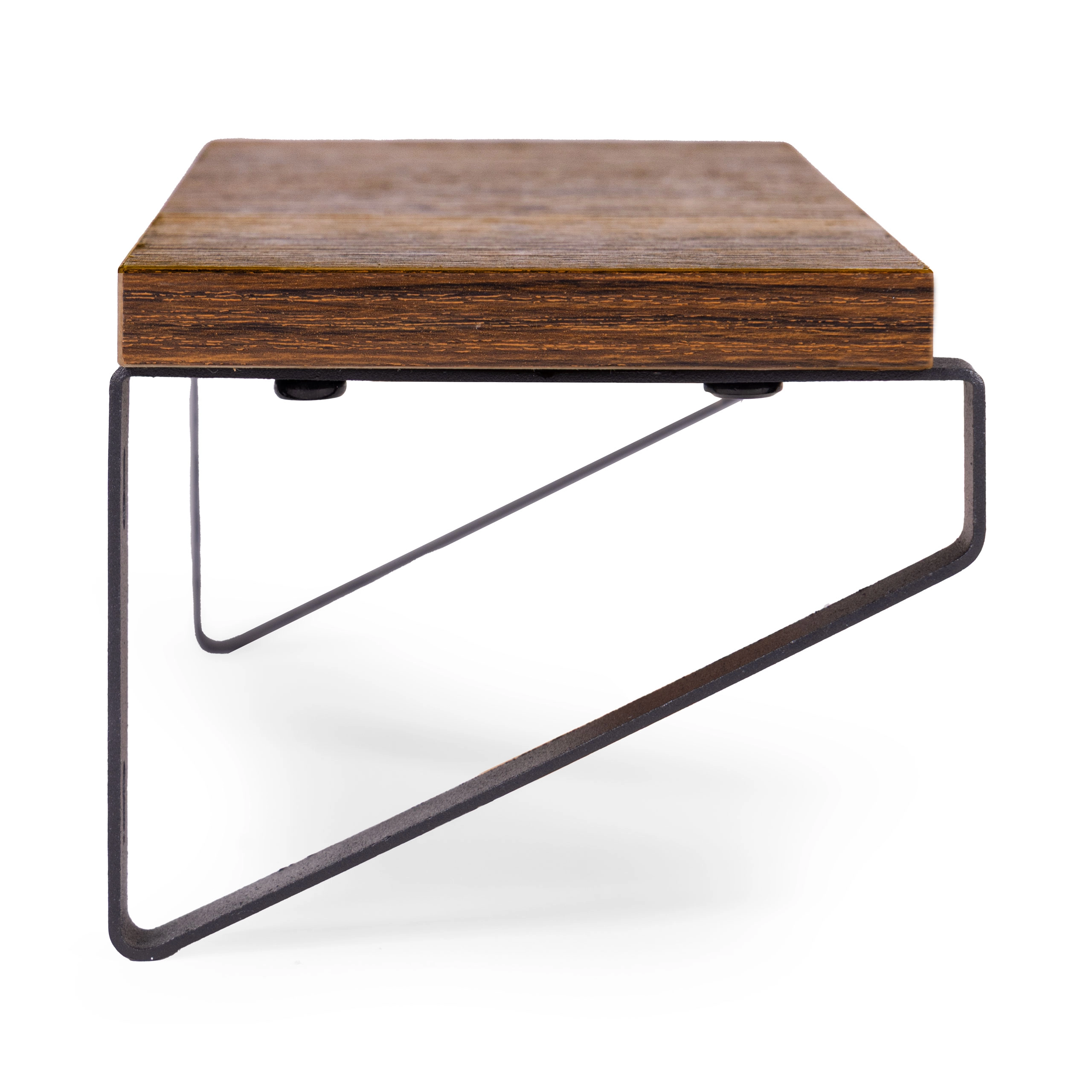 La combinaison du bois sombre et des supports en acier noir crée un look LOFT marqué, qui s’harmonise avec des aménagements modernes comme classiques.