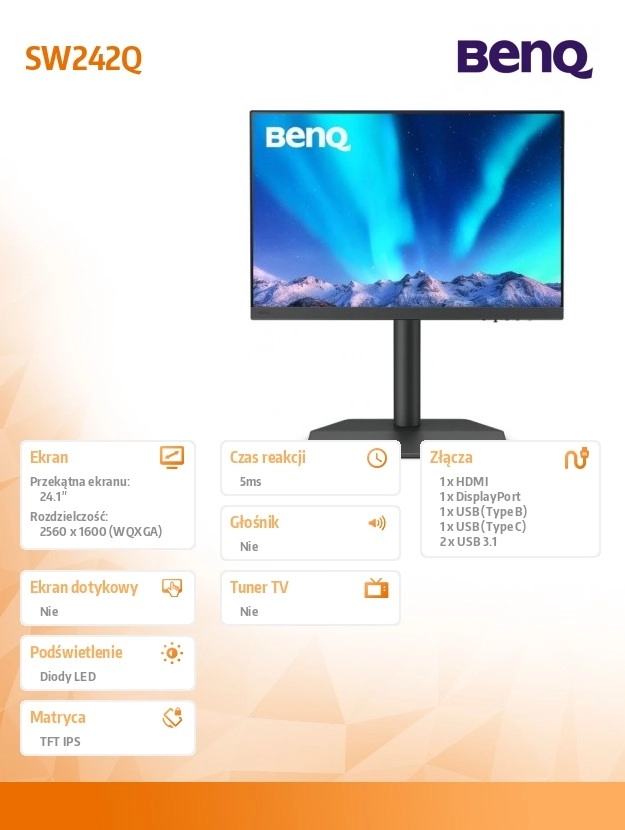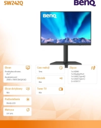 Le moniteur professionnel 23,8" BENQ SW242Q est idéal pour les photographes et graphistes exigeants. Il offre des couleurs précises avec un large gamut, une définition 2K fine et un temps de réponse rapide pour un flux de travail fluide. Grâce à l'accent mis sur la fidélité des couleurs, la définition 2K et des performances fiables, vous obtenez un affichage de qualité pour l’édition de photos et de vidéos.