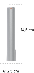 Corps métallique fin avec dragonne, agréable en main et facile à transporter – toujours prête à portée de main.