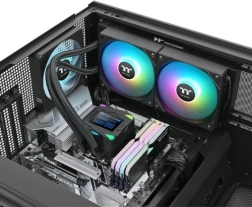 Le LA240-S ARGB est un refroidisseur AIO moderne conçu pour les configurations de jeu comme pour les stations de travail performantes. Il combine un radiateur 240 mm hautement efficace avec deux ventilateurs 120 mm rapides dotés d’un éclairage ARGB et un bloc élégant avec LCD segmenté 2,4", qui affiche les informations clés du système en temps réel.