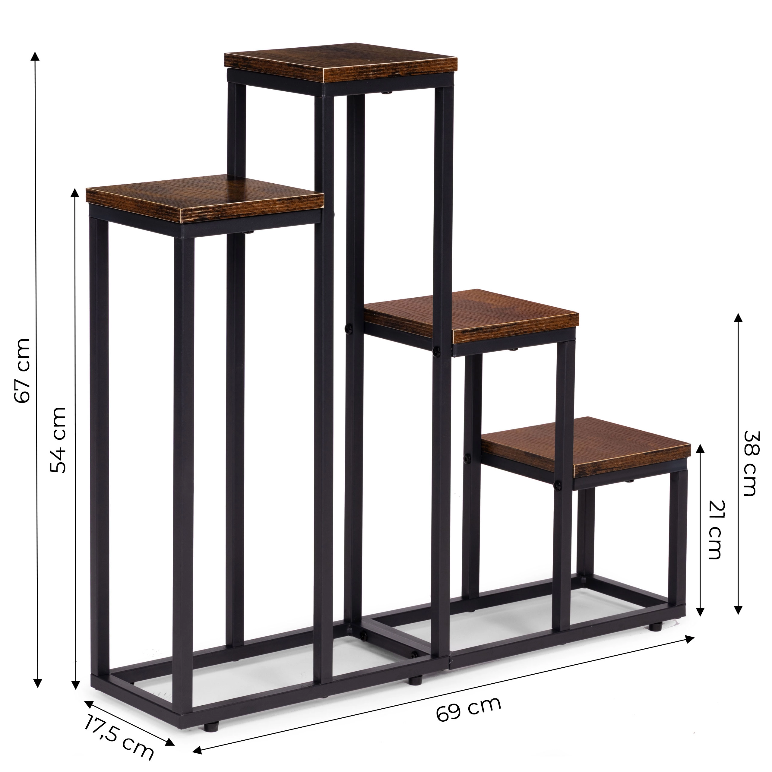 Créez un coin de verdure qui se remarque. Ce support à plantes de style loft associe un design industriel moderne à une structure en acier robuste et des étagères à décor bois. Grâce à ses dimensions compactes, vous optimisez l’espace et organisez vos plantes en niveaux clairs – des herbes aromatiques dans la cuisine aux fleurs décoratives dans l’entrée.