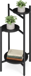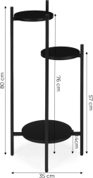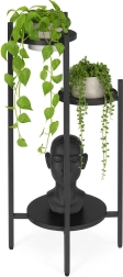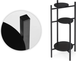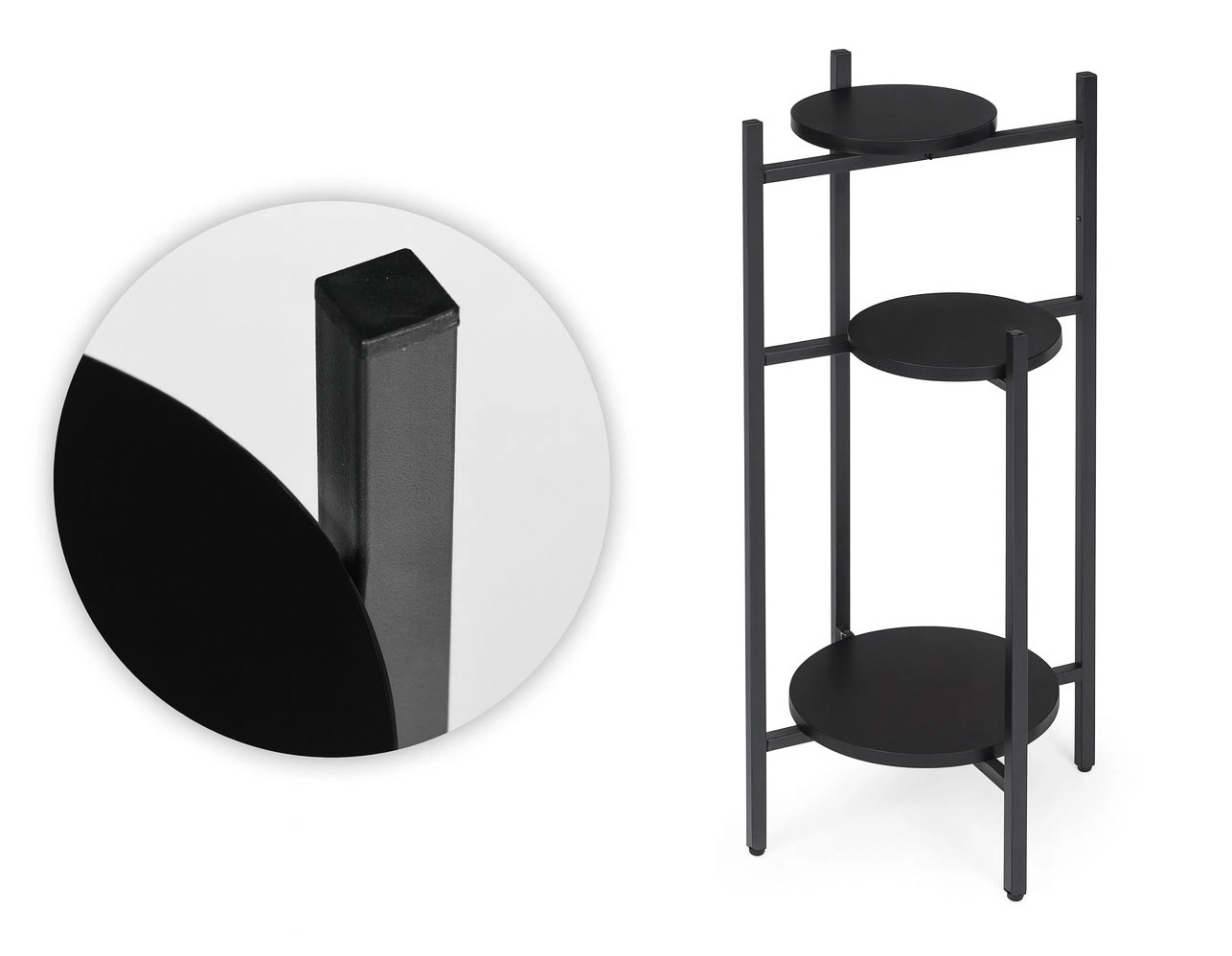 Élégant support à plantes à trois niveaux en acier résistant qui apporte plus de verdure et de style à votre maison ou bureau. Grâce à son design minimaliste moderne, à ses dimensions compactes et à ses trois étagères rondes, il exploite parfaitement l’espace vertical. Le métal peint par poudre assure une longue durée de vie, les pieds antidérapants protègent le sol et la capacité de charge de 15 kg offre une sécurité pour les plantes comme pour les décorations.