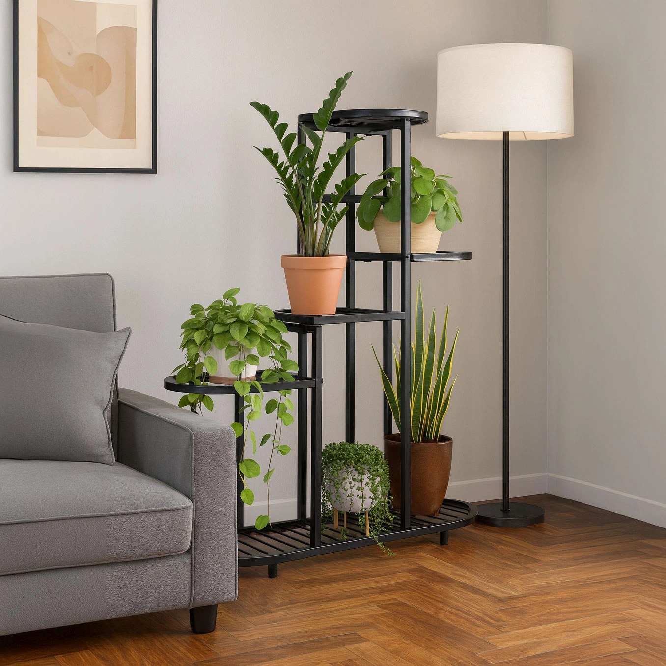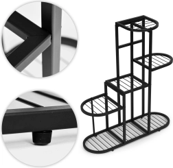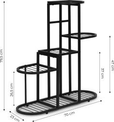 L’acier peint par poudre garantit une résistance à la corrosion et une longue durée de vie, tandis que les patins antidérapants protègent le sol des rayures et augmentent la stabilité sur les surfaces lisses. Grâce aux étagères en escalier, les plantes bénéficient de plus de lumière et d’une meilleure circulation de l’air.