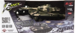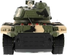 Tank RC avec effets sonores réalistes et tourelle rotative, idéal pour les batailles de guerre. Le tank fonctionne sur la fréquence de 27 MHz, est fabriqué en plastique durable et est alimenté par un pack de batteries rechargeable qui offre 10-15 minutes de plaisir par charge.