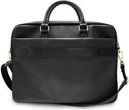 Ce sac business élégant de la marque GUESS est conçu pour ranger en toute sécurité un ordinateur portable jusqu’à 16" ainsi que les indispensables du quotidien. La surface luxueuse à texture Saffiano est particulièrement résistante à l’usure, à la déformation et aux rayures, tout en conservant une allure représentative. La face avant est ornée d’un logo GUESS embossé discret et d’un accastillage doré, soulignant son caractère premium.
