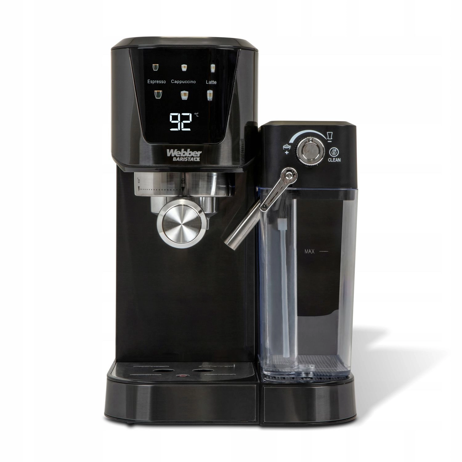 Découvrez l’espresso maison comme dans votre café préféré avec la machine à levier WEBBER L7 CALDAS. Grâce à une pression de 20 bars et à la pompe professionnelle ULKA, obtenez une extraction complète des arômes et une crema riche. Le Thermoblock rapide assure une montée en température éclair, la fonction One Touch Cappuccino avec Frio Leche prépare cappuccino ou latte d’une simple pression. Panneau LED avec boutons rétroéclairés, réglage de l’intensité et du volume du café, chauffe-tasses et 2 filtres inclus font du L7 un choix idéal pour débutants comme pour baristas passionnés.