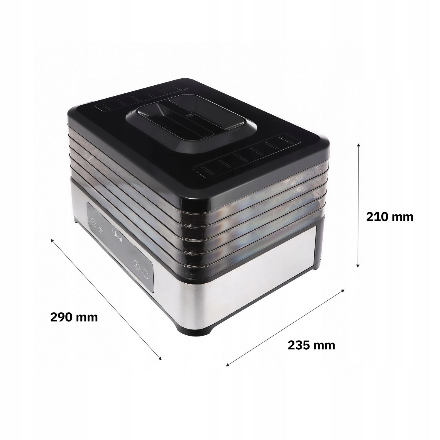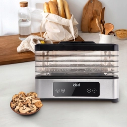 Préparez chez vous des snacks sains sans conservateurs grâce au déshydrateur alimentaire WEBBER IK3301. Il offre 5 plateaux à hauteur réglable (29 × 23 cm), une puissance de 400 W, un réglage continu de la température de 35 à 70 °C et une minuterie de 30 min à 24 h. La convection d’air assure un séchage uniforme sans devoir retourner les plateaux, le fonctionnement silencieux est idéal même la nuit et le corps transparent permet de contrôler le processus. Un panneau LED intuitif et un entretien facile font de ce modèle un allié fiable pour les fruits, légumes, herbes et viandes.